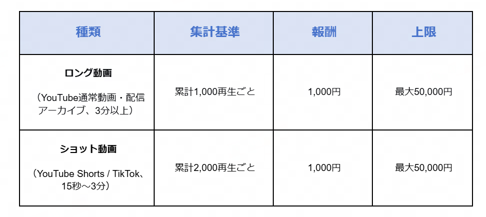 報酬は、残りの動画50本分が「基本報酬」のルールで、選ばれた10本の「優秀動画」が「追加報酬」のルールで、それぞれ計算・決済されます。